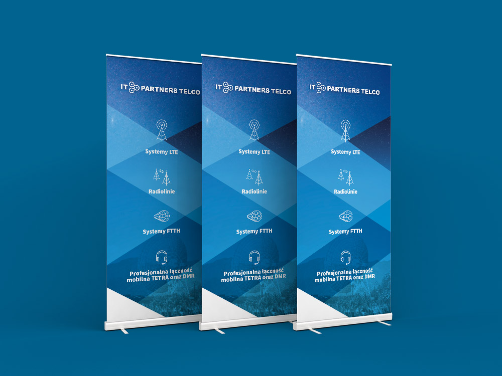 Roll-up z powodzeniem może zastąpić tablicę informacyjną konferencji, prezentację produktu, firmy, a czasem jedynie promować logo.