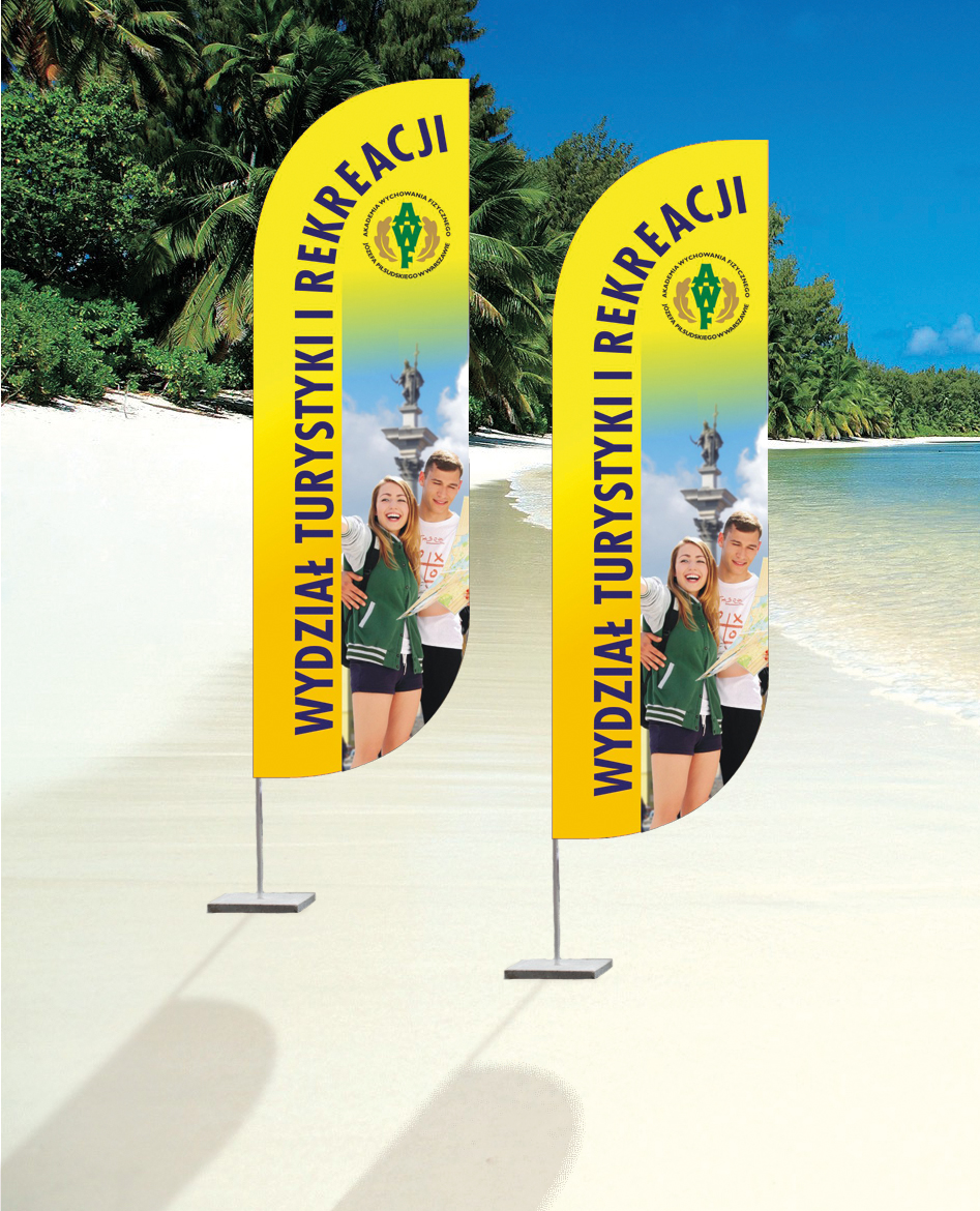 W czerwcu tego roku, zrealizowaliśmy zamówienie na 2 flagi dla Wydziału Turystyki i Rekreacji Akademii Wychowania Fizycznego. Windery zamówione zostały w najbardziej popularnym rozmiarze - FULL MIDI (85x300cm), wraz z podstawami wbijanymi, które nadają się do każdego miękkiego terenu.