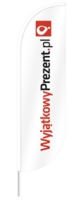 Flagi na masztach przenośnych dla www.wyjatkowyprezent.pl zostały wyprodukowane w ilości 20 sztuk. Na białej fladze metodą termotransferową zostało nadrukowane logo. Do każdego windera wykonaliśmy stopę wbijaną np. w ziemię czyli stalową sztycę o długości ok. 40cm.