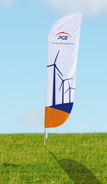 Dla Polskiej Grupy Energetycznej przygotowaliśmy 4 komplety flag FULL MIDI z podstawą wbijaną oraz torbami transportowymi.