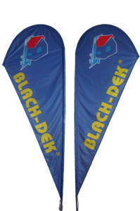Firma BLACH-DEK zamówiła prezentowane windery na potrzeby stoiska na targach branżowych. Flagi miały zostać zamontowane po obu jego stronach. W tym celu jeden z nich został przygotowany na odwróconym szablonie. Klient postanowił zamodzielnie zamontować te bowflagi, więc zamówił systemy bez podstaw.