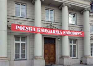 Niedawno wykonaliśmy baner o długości 10m dla Polskiej Księgarni Narodowej. Jak widać na załączonym zdjęciu został on zawieszony przed wejściem do do Pałacu Prymasowskiego przy Starym Mieście w Warszawie. Baner został zamocowany do 2 filarów za pomocą stalowych linek przez naszą zaprzyjaźnioną firmę montażową.