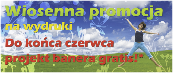 Zapraszamy do skorzystania z wiosennej promocji na wydruki! Baner to doskonała forma reklamy zarówno zewnętrznej jak i wewnętrznej. Niedrogi i skuteczny sposób na zwrócenie uwagi przyszłych klientów. Już od dziś do końca czerwca wykonamy dla Państwa projekt banera gratis!*