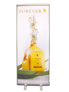 Firma Forever Living Products zamówiła u nas reklamę na banerach oraz na systemach wystawienniczych typu roll-up.