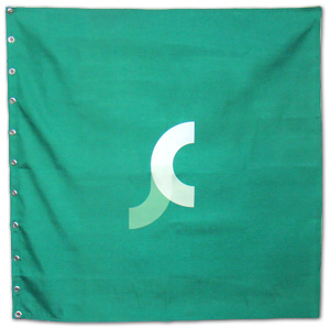 Nadruk logotypu został wykonany na impregnowanym materiale poliestrowym. Z takiego samego materiału wykonujemy również banery tekstylne, które mogą być eksponowane na zewnątrz. Jest on grubszy on materiału flagowego, dzięki czemu wydruk nie jest tak prześwitujący, a barwy są wyjątkowo żywe i przyjemne dla oka.