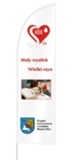 Winder, którego projekt wykonaliśmy ma 3.5m wysokości z czego flaga ma wymiary 0.8m x 3m. Do windera dołączona została podstawa napełniana wodą. Czerwone logo Stowarzyszenia oraz herb miasta Ełku świetnie prezentują się na białym tle.