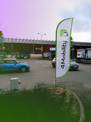 Firma 4Mobility zajmująca się wypożyczaniem samochodów, bardzo dobrze może oznaczyć swoje punkty bądź parkingi przez użycie winderów, które widoczne są z daleka.