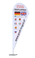 Winder HALF MIDI dla szkoły językowej ma rozmiar flagi 1.24mx3m a po naciągnięciu na maszt całość mierzy około 3,5m. Powierzchnia flagi jest dość duża dlatego można umieścić tam niezbędne informacje. Flagi HALF różnią się od flag FULL kształtem i rozmiarem. Maszt można składać, tworzą go aluminiowe rurki oraz element z włókna szklanego, który dopasowuje się do kształtu wydruku.